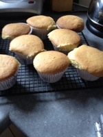 There were blueberries in the fridge so I thought I would make muffins. There was no buttermilk so I made my own. In the picture they look like this…